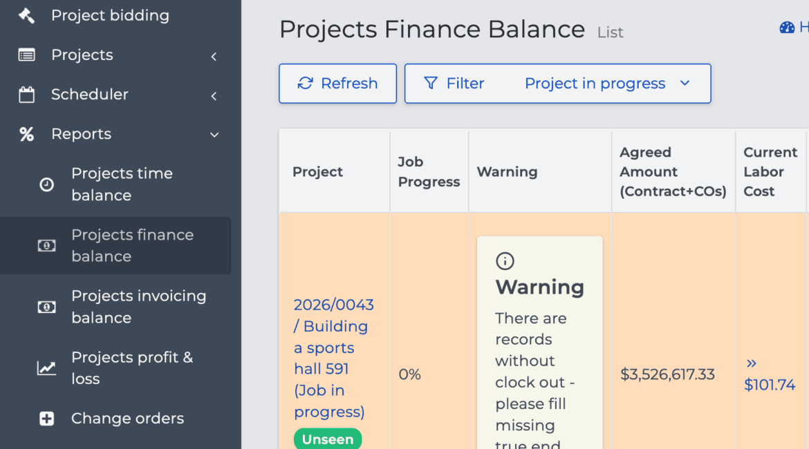 This allows construction company management to react early to potential issues, before losses become irreversible.