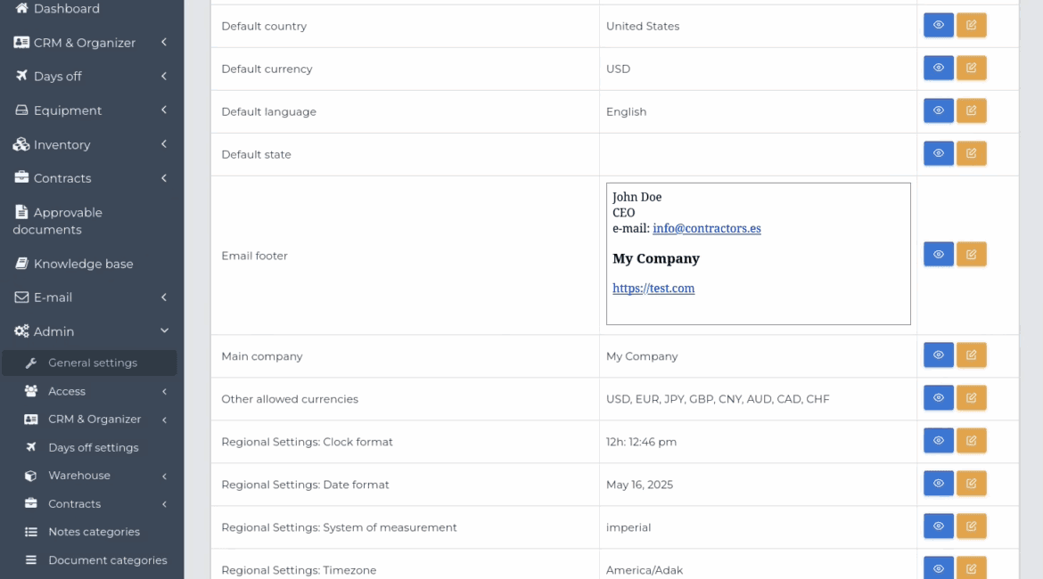 Uniform Footer for Everyone: Now, every email sent from the contractors.es system can have a consistent footer, making your company look even more professional.